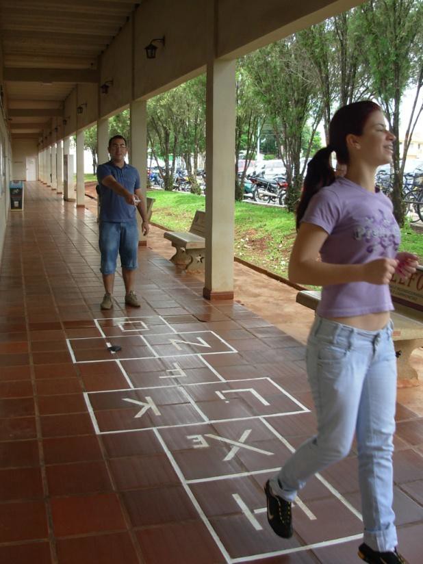 Fabiane e Luciana: acadêmicas do curso de Química na disputa da amarelinha.