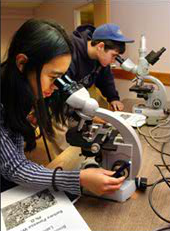 Figura 5- Estudantes observando microorganismos no microscópio