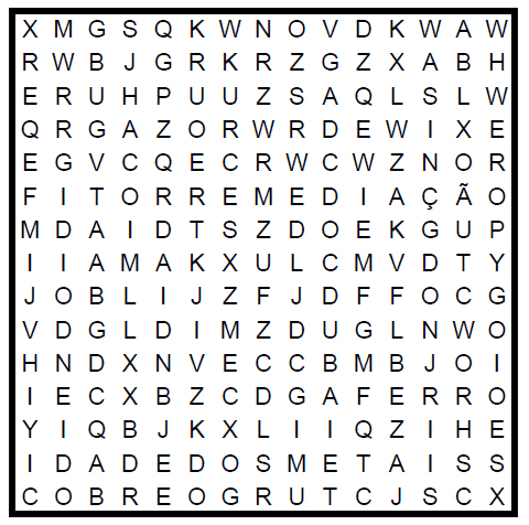Solução: 1. idade dos metais 2. cobre 3. ouro 4. ferro 5. Inglaterra 6. Dubai