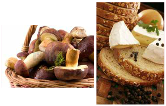 Figura 3- Vários fungos estão presentes na nossa alimentação, entre os quais os cogumelos comestíveis e diversos tipos de queijos