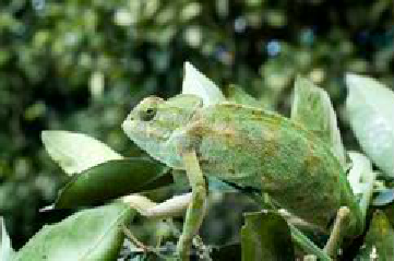 Figura 4- Há inúmeros exemplos de adaptação das espécies ao meio ambiente, entre os quais este camaleão, que assume a coloração esverdeada para se misturar com a folhagem e fugir de seus predadores.