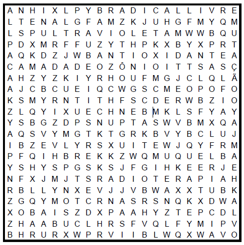 Esse caça-palavras apresenta os RADICAIS LIVRES. Para alguns, eles são do mal, para outros, do bem. A verdade é que muito se fala deles!