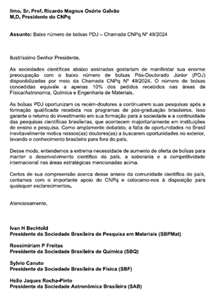 A SBQ assinou uma carta com SBPMAT, SBF e SAB que foi enviada ao presidente do CNPq, externando a preocupação com o baixo número de bolsas PDJ aprovadas na Chamada 49/2024. O número de bolsas equivale a 10% dos pedidos recebidos nas áreas de Física/Astronomia, Química e Engenharia de Materiais. Confira o texto na íntegra. » Veja mais…