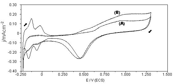e (B) eletrodo de Pt modificado.