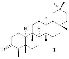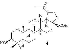 Levantamento bibliográfico efetuado no Chemical Abstract (até agosto/1999), bem como no Institute for Scientific Information Citation Databases sobre o gênero Tovomita, revelou que nenhum estudo fitoquímico e/ou biológico havia sido, eté então, efetuado com a espécie T. brevistaminea Engl. Entretanto, em outubro/1999, verificou-se na literatura ocorrência de duas xantonas (Manglexantona, Trapezifolixantona) e de três benzofenonas (Tovofenonas A, B e C) no extrato clorofórmico das raízes21. No entanto, o fracionamento cromatográfico dos extratos clorofórmicos das raízes e do caule, incluindo as cascas de um espécimen identificado como T. brevistaminea Engl., coletados no município de São Luis do Quitunde/AL, conduziu ao isolamento de uma antraquinona (1) e três triterpenos (2-4) e de uma mistura constituída dos fitoesteróides b-Sitosterol e Estigmaterol. De acordo com a química de Guttiferae, antraquinonas e derivados antranóides têm sido encontrados em espécies da tribo Vismieae. De acordo com Bennett e Lee20, os gêneros estudados das tribos Vismieae (Vismia, Psorospermum e Harungana) e Clusieae (Clusia e Tovomita) produzem xantonas e benzofenonas, constituintes de importância taxonômica na família. Na tribo Clusieae, estas classes ocorrem com frequência em espécies de Tovomita; no entanto, em Clusia, onde um número reduzido de espécies foi investigado22, somente recentemente xantonas foram encontradas em C. nemorosa23 e em C. insignis24. Se analisarmos o fato seguindo a mesma linha de raciocínio, não descartando porém a necessidade de uma revisão mais criteriosa quanto a identificação da espécie em questão, visto que dentre as 60 espécies de Tovomita existentes, apenas 07 tiveram sua composição química investigada, é possível que a ocorrência de antraquinona na tribo clusieae seja mais um argumento para fortalecer a discussão entre uma maior interrelação entre as duas tribos e, consequentemente entre as duas subfamílias.