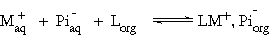 Os experimentos de extração foram realizados de água para clorofórmio, mediante a complexação dos metais pelos derivados de calixareno com glicina e aspartato de metila dissolvidos no clorofórmio; medindo-se a absorbância do picrato do metal alcalino (M+Pic-; M= Na, K, Rb, Cs; Pic-= 2,4,6 trinitrofenol) na fase orgânica. Considerando o equilíbrio abaixo, tem-se a seguinte equação para a constante de extração, Kext: