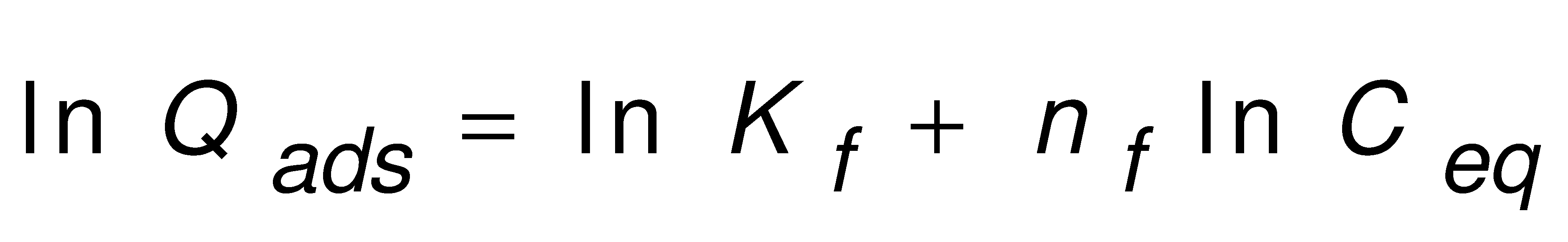 Aos dados obtidos foi aplicado a isoterma de Freundlich e a constante Kf foi calculada por: