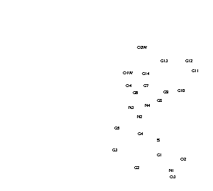 Analyses of the rotational barriers around C=C-C=N and N-C-C-CB torsion angles for (1) and (2) showed that the crystallographic conformations are in energy minima and that the energy barrier to pass from one conformation to the other in (1) is of almost 2 kcal/mol. As the crystallographic conformations were found to be excellent starting points they were used for Molecular Dynamics studies of 10 ps of heating from 0 K to 1000 K and then the temperature was maintained for 200 ps. The chosen configurations were quenched to 0 K in 2 ps of MD. These structures were minimised by MM+ followed by AM1. The final conformation of (2) is almost equal to that in the crystal, the main difference being that of the relative orientation of the phenyl ring. The extended conformation of (1) converges to itself and the other one converges to a conformation, which is almost equal to the one obtained for (2). It means that by MD only two different conformations were obtained the main is in the relative orientation of the heterocyclic ring.