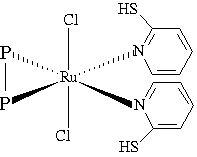 As reações de 1 e 2 com a 2-mercaptopiridina foram feitas como segue: solubilizou-se o ligante (excesso de 2 vezes) em metanol na presença de trietilamina e em seguida adicionou-se esta solução ao complexo. Foi mantido aquecimento sob refluxo por 12 horas. A solução final de coloração laranja-amarelada foi concentrada ocorrendo precipitação de sólido amarelo intenso. A caracterização dos sólidos obtidos foi feita por espectroscopia I.V. e U.V., RMN 31P{1H}, voltametria cíclica, análise elementar e medidas de condutividade, sendo possível propror as seguintes fórmulações para os complexos formados: trans-[RuCl2(dppe)(2-Hspy)2] (3) e trans-[RuCl2(dppen)(2-Hspy)2] , onde 2-Hspy = 2-mercaptopiridina