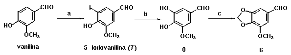 Resultados e Discussão: O aldeído 6 foi preparado em três etapas, a partir da vanilina comercial, de acordo com a metodologia mostrada abaixo1.