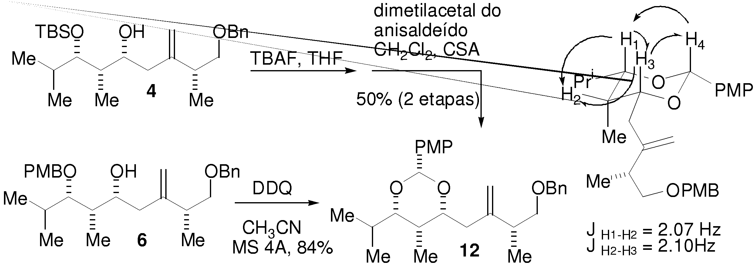 estereoquímica relativa para as subunidades 4 e 6.