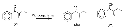 Nas condições acima especificadas, a cepa P. Kluyveri levou a melhores resultados com a formação do carbinol (2b) em rendimento de 40%, após 7 dias de incubação. Os excessos enantioméricos e configurações específicas resultantes desta biotransformações estão sendo determinadas.
