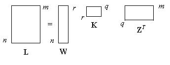 Figura 1-ACDM L-matriz de dados (n´m), W (n´r) e Z (m´q) matrizes usadas para representar os modos 1 e 2, K (r´q) matriz de conexão.