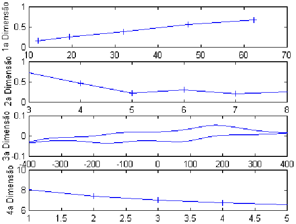 Por fim, os loadings da quarta dimensão mostram que a corrente elétrica diminui com o ciclo, ou seja, que a cada ciclo, parte do azul de metileno é desorvido do eletrodo. Porém esse comportamento não é linear, e sim assintótico, ou seja, a quantidade de material adsorvido no eletrodo diminui até um limite, a partir do qual passa a ser constante.