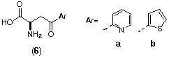 Desenvolver uma rota sintética enantiosseletiva para oxoaril-D-alaninas (6) com potencial ação glutâmica via receptores ou inibição enzimática. Em um estudo inicial, pretende-se sintetizar os derivados 2-piridil (6a) e 2-tienil (6b).