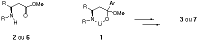 Método-A formação preferencial de 3 ou 7, independentemente do arillítio utilizado como nucleófilo, implica na estabilização dos possíveis intermediários tetraédricos (1) gerados no caminho reacional. Foram utilizados os b-aminoésteres modelo (2a-c) e quiral (6a-c), onde os diferentes substituintes introduzidos no átomo de nitrogênio teriam a função de modular a basicidade e a capacidade de quelação deste átomo e, consequentemente, controlar o curso reacional.