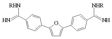 Atualmente existe um grande interesse na obtenção de drogas ativas contra Pneumocystis carinii, causador de pneumonia que é uma infeção oportunista que acomete 80% dos indivíduos HIV positivos. Trata-se da causa mais comum de morbidade e mortalidade entre esses indivíduos. A pentamidina é a droga de escolha no tratamento da PCP (pneumonia causada por P. carinii), apesar dos seus efeitos colaterais que incluem nefrotoxidade, hepatocicidade, hipotensão. Ela também tem sido usada clinicamente no tratamento de tripanosomiases africanas e leishmaniose antimônio-resistente. Assim, tem-se procurado obter análogos que sejam mais potentes e menos tóxicos que a pentamidina. Várias hipóteses tem sido propostas para explicar o modo de ação desses compostos. Há fortes evidências de que eles se ligam à fenda menor do DNA em regiões ricas em Adenina-Timina (AT), com subsequente inibição de enzimas DNA-dependentes. Os análogos rígidos e semi-rígidos da pentamidina apresentam uma potência maior, uma toxidez menor e se ligam mais fortemente ao DNA, quando comparados à pentamidina. A furamidina, um derivado furânico, é exemplo.
