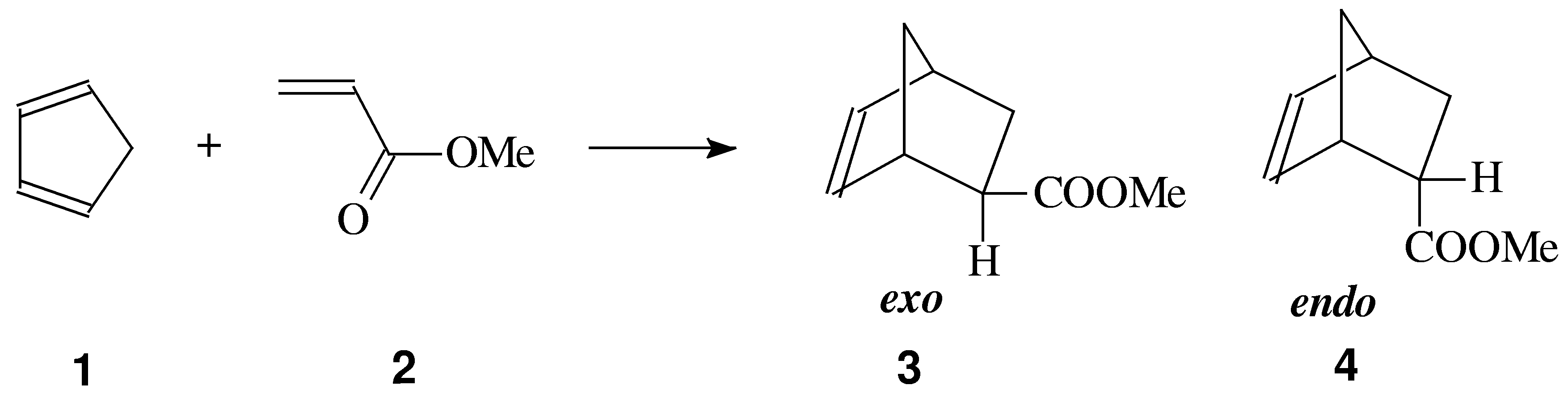 foi entre ciclopentadieno (1) e o acrilato de metila (2), que pode
