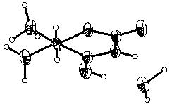 Discussion: The trans molecule presents static disorder could be satisfactorily described by a simple model postulating two different conformation, with C2 and C3 atoms occupying alternatively one of two positions. The SOF factor of that positions were refined constraining their sum to be equal 1.00. The disorder in this compound accounts for the low quality of the crystal data, but nevertheless the main objective of this study was obtained which was the determination of the conformations. Atoms O1 and C4 are 0.16(2) and 0.14(1) C, respectively, out the plane defined by other four atoms, C2-C3-C5-C6 with a torsion angle of[3.7(7)]º while the same angle for H2-C2-C3-H3 of 177.4º indicates the trans configuration. The lactone ring for this molecule assumes twisted boat conformation. The molecules are maintained joins through hydrogen bonds with waters molecule. The distances and angles involved with hydrogen bonds are: H2O...O1W = 1.772; O2 - O1W = 2.585(4); O2 - H2O = 0.82Å; O2 - H2O...O1W = 171º; O1W - H1W = 1.01; H1W...O3(i) = 1.836; O1W...O3(i) = 2.753(4)Å; O1W - H1W...O3(i) = 149º; O1W - H2W = 1.09; H2W...O3(ii) =1.684; O1W...O3(ii) = 2.776(4) Å; O1W - H2W...O3(ii) 178º. {[i] = (x,1+y, z) ; [ii] = (2 - x, 0.5+y, 0.5 z)}.