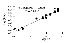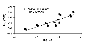 log (X/M) = log Kf + n log Ce (3)