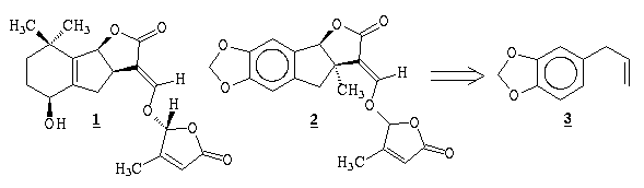 O estrigol 1 é um produto natural da classe dos sesquiterpenos que apresenta intensa atividade estimuladora de germinação, podendo, potencialmente, ser utilizado como herbicida.1 Recentemente, reportamos a preparação de um novo análogo aromático do estrigol 2, tendo como precursor o alil-benzeno natural safrol 32 (Figura 1).