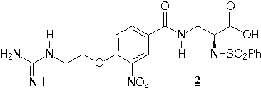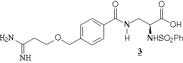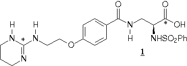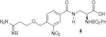A angiogênese é a formação de novos vasos sangüíneos capilares a partir das células endoteliais3,5. Os tumores requerem a angiogênese para que seja provida nutrição suficiente para as células cancerígenas que estão em rápida proliferação3,5. Além disto, os novos vasos sangüíneos formados são usados como vias para as células cancerígenas entrarem na circulação sanguínea (metástase) 3. Portanto, substâncias inibidoras de angiogênese podem reduzir o tamanho do tumor e, potencialmente, mantê-lo em estado latente5. Foi demonstrado que as integrinas que estão envolvidas na migração celular e na angiogênese, em particular a integrina avb3, são altamente expressadas em vários tipos de células tumorais. As proteínas da matriz extra-celular, que estão envolvidas na interação com as integrinas, têm sítios de reconhecimento, que são regiões de ligação às integrinas. O sítio de reconhecimento mais freqüente é a seqüência de aminoácidos Arginina-Glicina-Aspartato (RGD)3, que tem sido usada como protótipo para o desenvolvimento de diferentes antagonistas de integrinas. Dentre os antagonistas da integrina avb3 estão os análogos da RGD não peptídicos 1 e 2. O nitroariléter 2 apresentou uma excelente e seletiva atividade inibitória da angiogênese in vivo no teste na membrana coriolantóica de pinto5. As estruturas dos antagonistas da integrina avb3 não peptídicos possuem um grupo suporte central (como benzeno, benzodiazepina ou uréia) na qual estão ligados apêndices carregando grupos carboxilato e guanidino (ou isósteros)5. No presente trabalho, os nitroariléteres 1 e 2 foram escolhidos como protótipos de inibidores da integrina avb3. Baseando-se na estrutura destes protótipos foram propostas as moléculas 3 e 4, como potenciais inibidores de angiogênese.