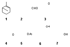 Pode-se notar a presença de produtos derivados da abertura do anel oxirana do epóxido (3) seguida de isomerização (aldeído canfolênico, 2), da esterificação do produto de oxidação alílica (acetato de verbenila, 5) e do rearranjo do a-pineno, produzindo o carveol (6) na reação realizada em ácido acético. Ao se realizar a reação em um solvente não-ácido como a acetonitrila estes produtos não são formados, aumentando a seletividade da reação.