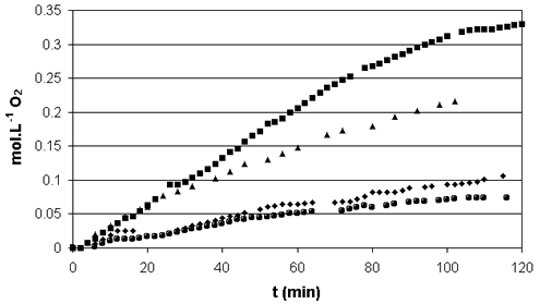 a Så -Quantidade dos produtos identificados (2, 4-6) em relação ao O2 consumido.