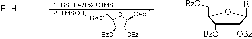 A metodologia empregada para a síntese dos nucleosídeos 2-13 utiliza a reação de acoplamento entre uma base nitrogenada adequada, previamente sililada, e 1-O-acetil-2,3,5-tri-O-benzoil-b-D-ribofuranose.3,4