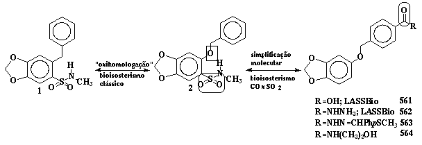 CONCLUSÕES: A metodologia sintética empregada na obtenção dos novos derivados LASSBio 561, 562, 563 e 564 mostrou-se satisfatória, com rendimento global médio de 47-61%. Os resultados farmacológicos obtidos para os novos derivados (LASSBio 561-564) confirmaram seu perfil antiinflamatório e analgésico e validam a estratégia empregada para o planejamento racional desta nova família de compostos bioativos. A ausência de propriedades ulcerogênicas de LASSBio 561-564 permite inferir-se um perfil de ação seletiva sobre a isoforma PGHS-2.