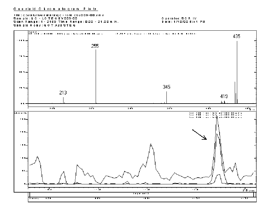 Durante a etapa de clean-up da amostra, verificou-se que a técnica de ELL seguida por CIA, possibilitou a obtenção de um extrato mais puro, como pode ser observado na figura 1. O limite de detecção da metodologia analítica para alguns esteróides como: metiltestosterona, estanozolol e metandienona, foi menor que 2 ppb. Em relação aos b2-agonistas, a ELL, empregando como solvente orgânico (TBME: t-butanol) 5:1, v/v, possibilitou uma recuperação para os analitos superior a 85%, e um limite de detecção da metodologia analítica de 1 ppb.