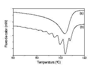 Figura 02 Amostra 5%, 90ºC: (a) DSC convencional; (b) DSC técnica SSA