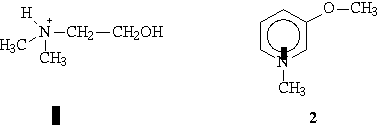 O espectro de RMN de 1H do composto 1 mostrou sinais em d 3,22 (6 H); 3,49 (2 H) e 3,90 (2 H). Nos espectros de RMN de 13C/DEPT foram observados sinais em d 54,7 (2 CH3) e 69,0 (CH2), desdobrados como tripletes, característicos de carbonos ligados diretamente a um átomo de nitrogênio quaternário.