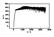 Figura 1:Cronopotenciograma obtido da anodização do zircônio em meio ácido. Densidade de corrente de 24 mAcm-2; eletrólito H3PO4 0,1 molL-1 e T: 25 oC. |
