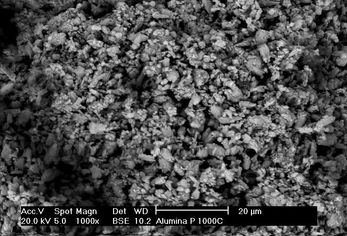 Através da análise qualitativa da figura 1, observa-se que a Al2O3 P, com um valor de pH intermediário, apresentou menor tamanho de partícula em comparação com as demais amostras. Esta também apresentou uma maior agregação das partículas, como também maior homogeneidade, em função do tamanho das mesmas.