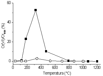 Evolução da quantidade relativa de Cr(VI) com a