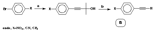 As características dessa série desenhada são as de, a princípio, apresentar uma anisometria adequada a cristais líquidos calamíticos e, ao mesmo tempo, possuir os requisitos básicos de um cromóforo óptico não-linear (NLO) ativo.