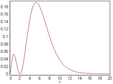 Para o caso de soluções de estados quânticos hidrogenóides, podemos combinar a descrição algébrica da função de onda radial, por exemplo, do estado 2s (em unidades atômicas), e sua representação gráfica: