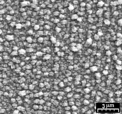 A Figura 1 traz as micrografias (ampliação de 5000x) das ligas Co-Cu eletrodepositadas sobre eletrodo de platina, obtidas por voltametria linear de varredura. Observa-se uma modificação na morfologia dos eletrodepósitos, sendo esta modificação consistente com a variação do conteúde de cobre nas ligas . A medida que aumenta a concentração de cobre na composição de banho, a morfologia passa a ter um aspectos de grãos mais compactos.