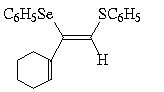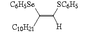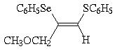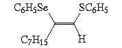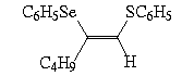 A reação processou-se de maneira 100 % régio e estereosseletiva (consultar Tabela 1), com o grupamento selenofenil ligando-se do mesmo lado e em b ao grupamento tiofenila. Os selenetos vinílicos obtidos foram isolados por coluna cromatográfica-flash com sílica-gel utilizando hexano como eluente.