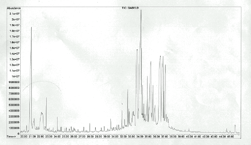 Análise por Cromatografia: as análises por Cromatografia de Gás foram efetuadas nas seguintes condições: a-amostra teste : coluna 30m X 0,32mm, df=1, divisão de fluxo ( split 1:20), gás de arraste nitrogênio (2mL/min),135ºC  150ºC (10ºC/min), 150ºC  300ºC (20ºC/min), detector e injetor 300ºC; b-fração de alcalóides da Peschiera affinis: idem coluna 220ºC (1,5min), 220ºC  300ºC (30ºC/min), 300ºC (15min). As estruturas dos alcalóides foram sugeridas pelo acoplamento de cromatografia de gas/espectrometria de massas (Hewlett Packard modelo 6890).