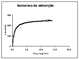 Resultados: Os parâmetros qm e Kd, da isoterma de Langmuir,