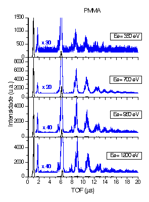 Fig.1 Espectros de tempo-de-vôo de PMMA. |