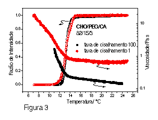 da temperatura para uma solução de PEG/CHO 15% m/m. A