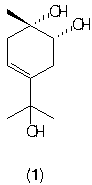 O fracionamento cromatográfico de 1,2 g do resíduo do decoto, obtido da resina, em acetato/metanol (4:1) forneceu 5,5 mg de um sólido branco solúvel em metanol de p.f. 137-137,8 ºC, que foi identificado, por meio de técnicas de RMN uni e bidimensionais (COSY, HMQC e HMBC) e comparação com dados da literatura [3], como monoterpenóide (1,2,8-trihidroxi-D3-limoneno) (1).