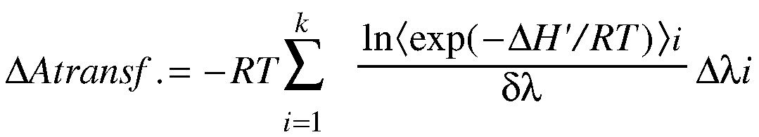 A trombina é uma serinil-protease que desempenha papel central na coagulação sangüínea. Esta enzima é responsável pela conversão do fibrinogênio em fibrina, sendo também o estimulante mais potente da agregação plaquetária. Desta forma, sua inibição tornou-se o alvo principal no desenvolvimento de novos agentes antitrombóticos. Dentre os inibidores do centro ativo, podemos citar a benzamidina1 e a 4-(3-carbóxi-2-oxo-1-propil)-benzamidina.1 No presente trabalho, apresentamos resultados parciais da avaliação da diferença de energia livre de complexação à trombina destes inibidores e entre estes e novos candidatos. Para isto, adotamos a estratégia do cálculo de energia livre relativa entre dois estados, empregando o algoritmo FDTI2 (Discover 2.9.7-InsightII-MSI). A diferença de energia livre da transformação entre dois estados (DAtransf.) pode ser descrita pela equação: