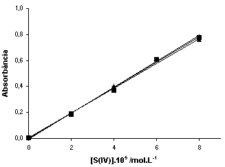 S(IV) = 8,0.10-5 mol.L-1; (T=25,Oo C) peptídicos (pH=9). [CuII(pep)]2- =1,0.10-3 moll.L-1,